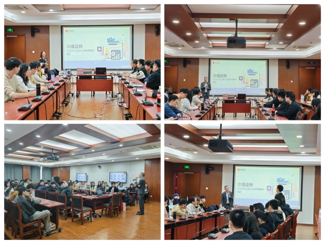 2025年11月13日,中信证券股份有限公司上海分公司副总经理陈哲一行到访上海电力大学经济与管理学院,双方围绕人才培养、实习基地建设、校园招聘等议题进行了深入交流,并面向全校学生举办了专场校园宣讲会。此次活动是经管学院持续推进“访企拓岗促就业”专项行动的重要举措,为深化校企合作、促进学生高质量就业搭建了有效平台。